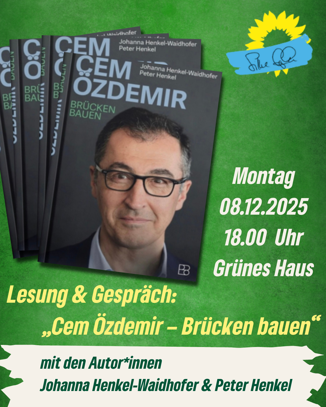Zu Gast sind Johanna Henkel-Waidhofer und Peter Henkel mit ihrem Buch „Cem Özdemir – Brücken bauen“. Die Biografie zeigt den Politiker @cem.oezdemir, der Konflikte meistert und Lösungen bietet — zwischen Herkunft und deutscher Politik, zwischen Wirtschaft und Klimaschutz, zwischen gesellschaftlichen Lagern, die sich zunehmend verhärten. Genau deshalb spannend und politisch relevant.